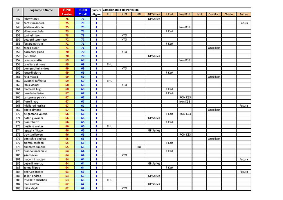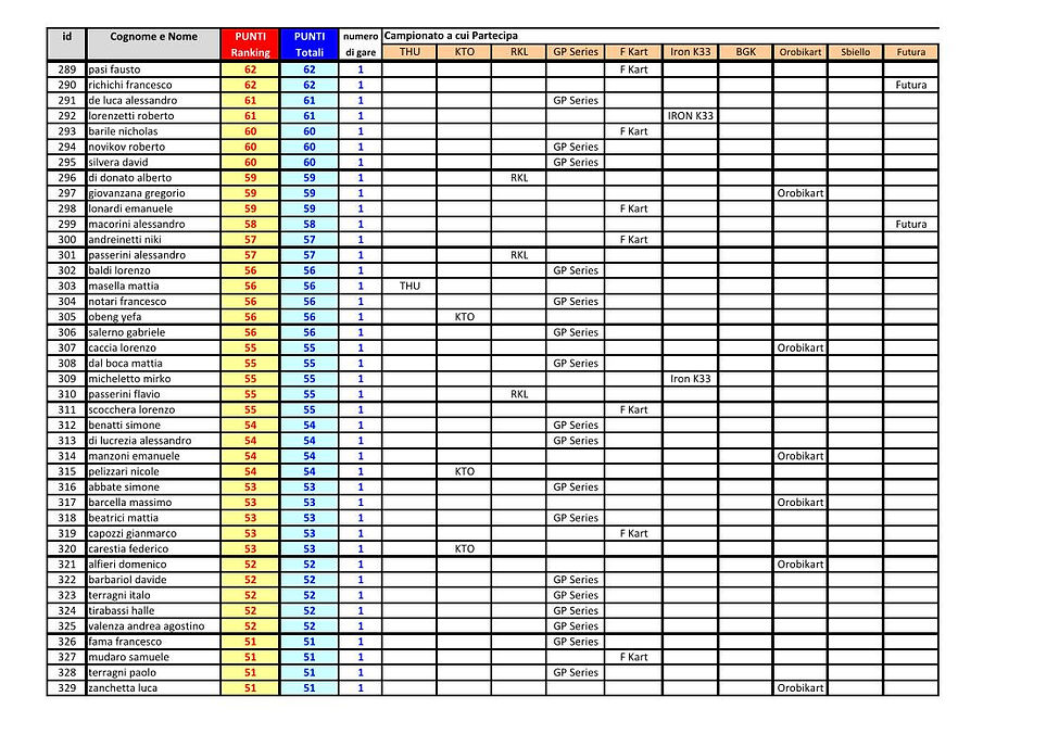 Per vedere il dettaglio dell'assegnazione dei punti del presente Ranking consulta la sezione "I Campionati Sprint" dove troverai i risultati delle gare di ogni Campionato con i relativi punteggi.